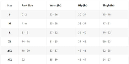 | Taille | Taille (cm) | Hanches (cm) | Longueur entrejambe (cm) |