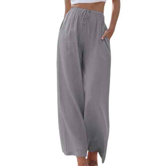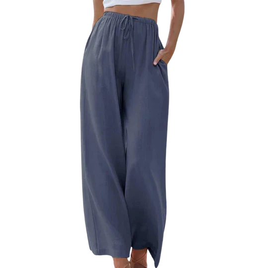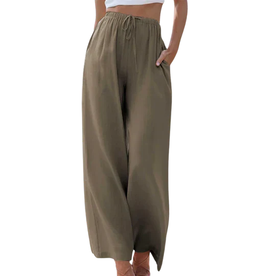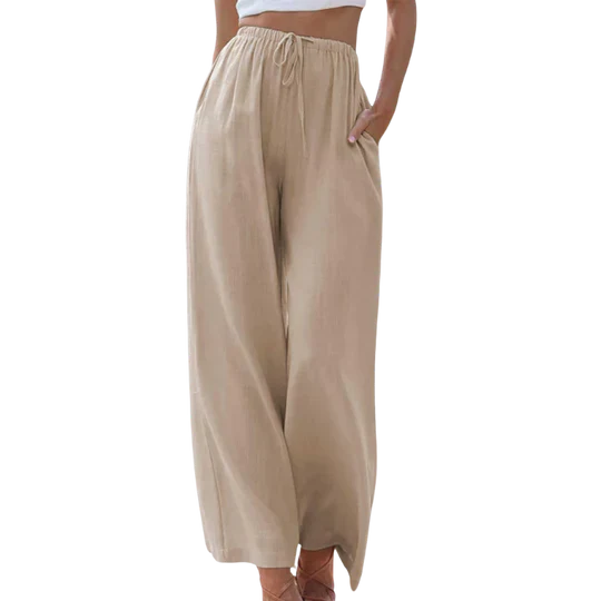 Le lin, quant à lui, apporte une touche de légèreté et de l'élégance à ce pantalon.