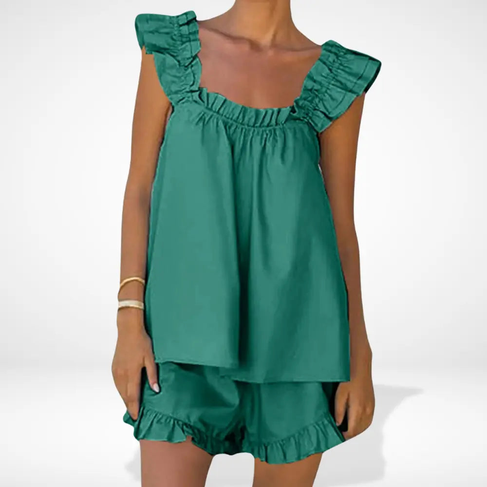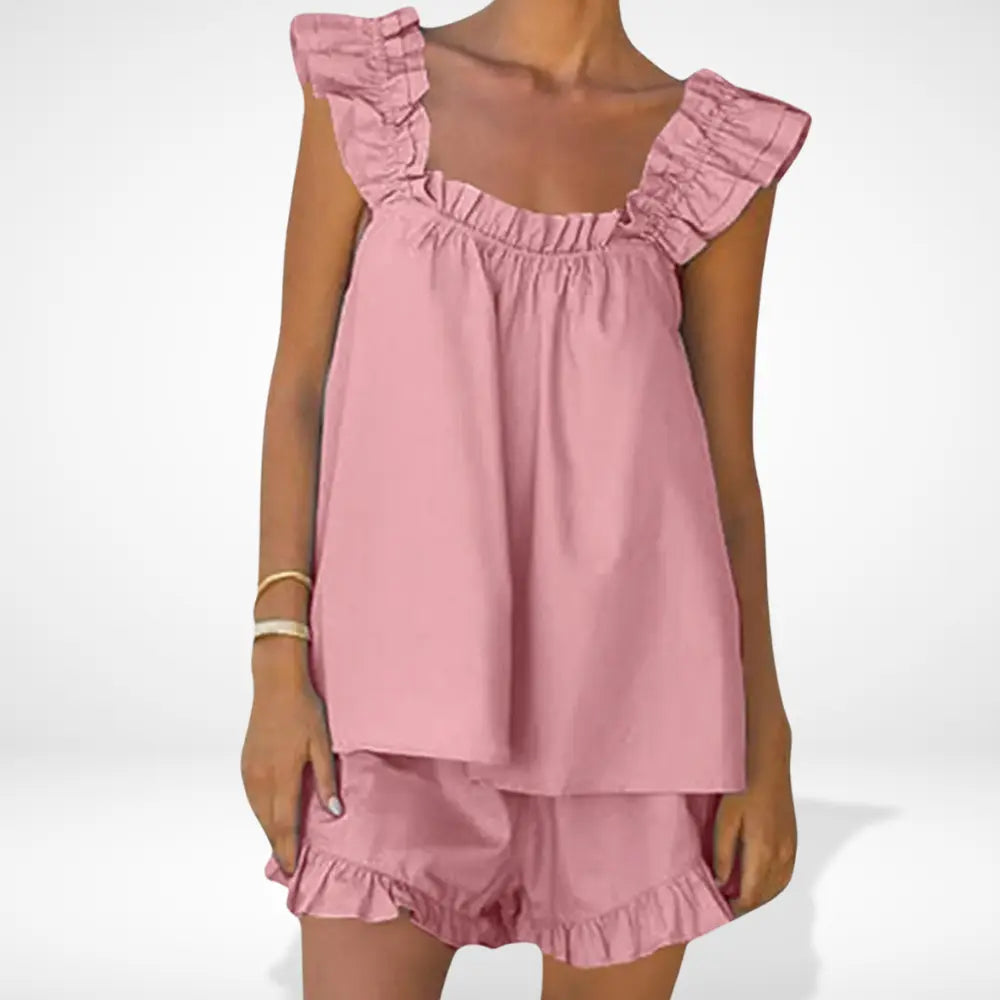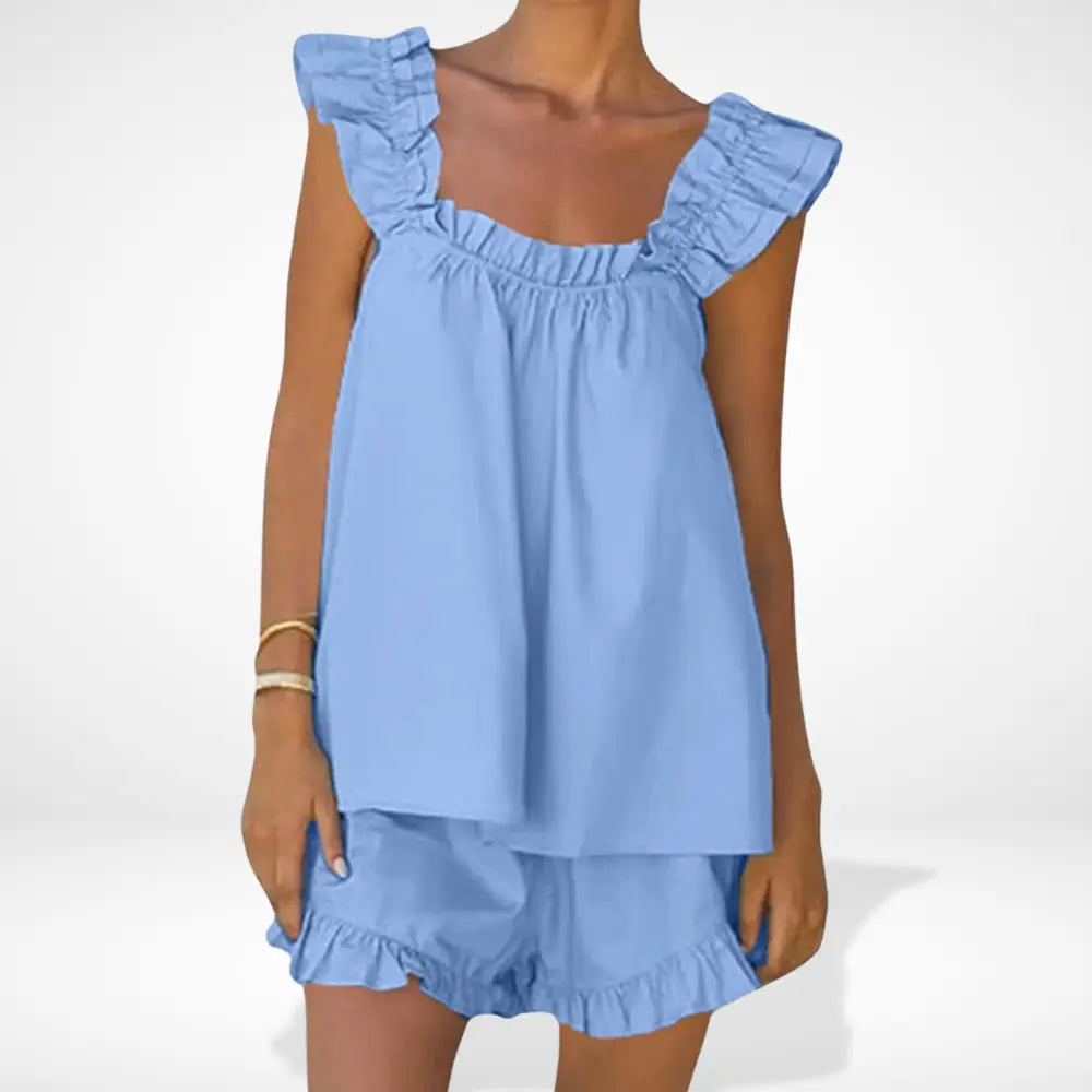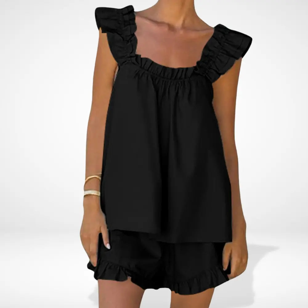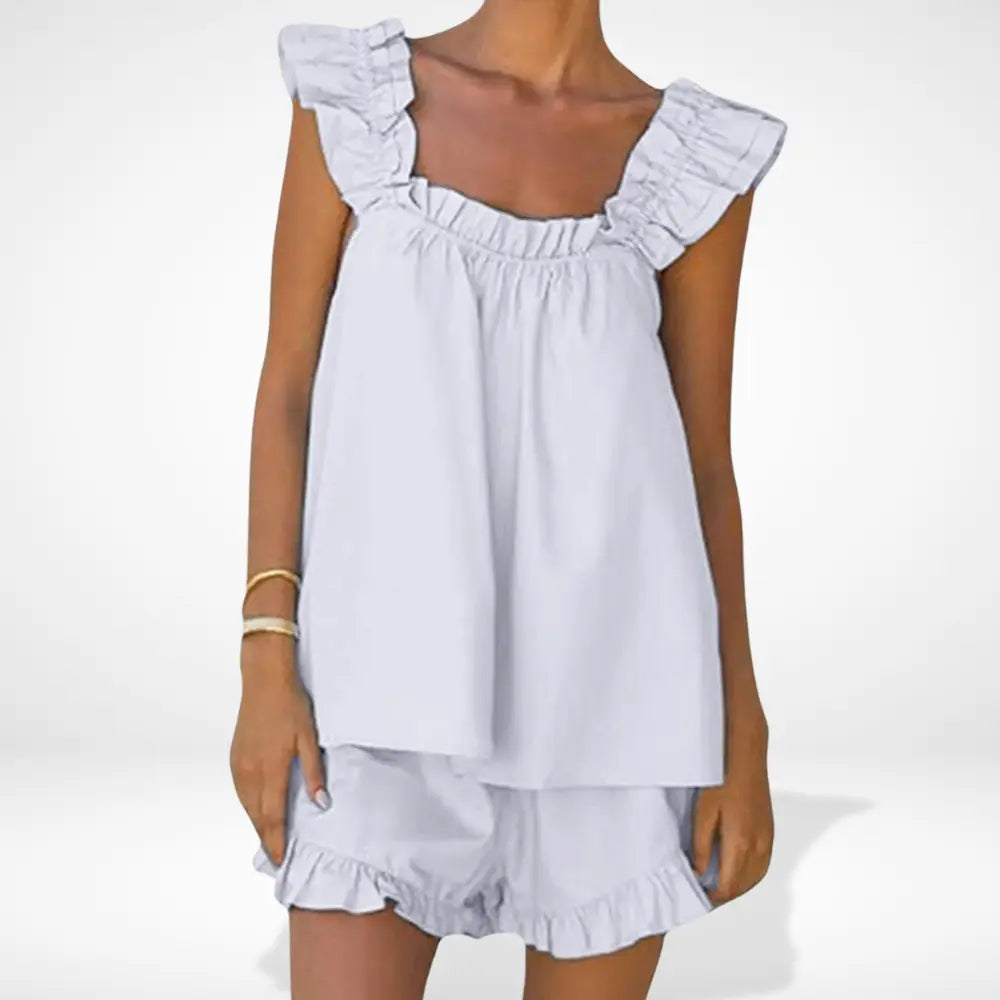 Volants féminins – Une touche élégante sur les épaules et le bas du short.