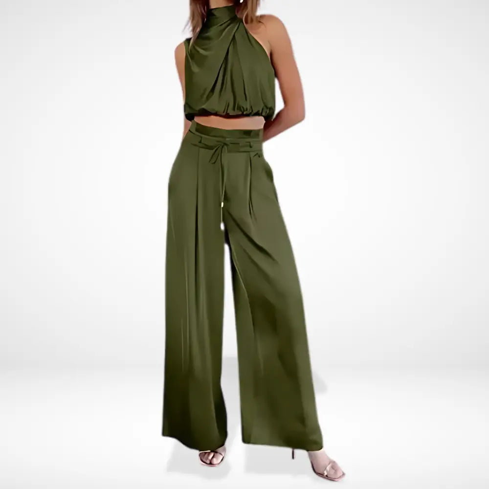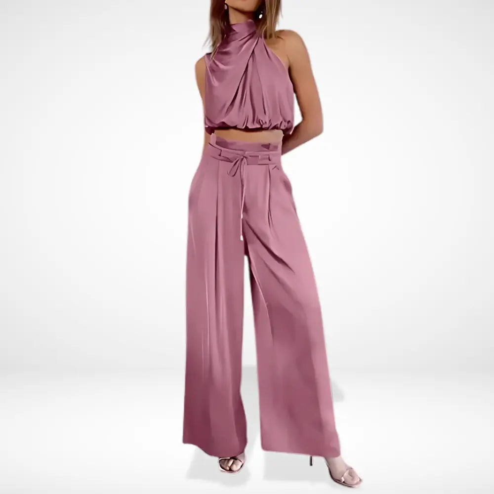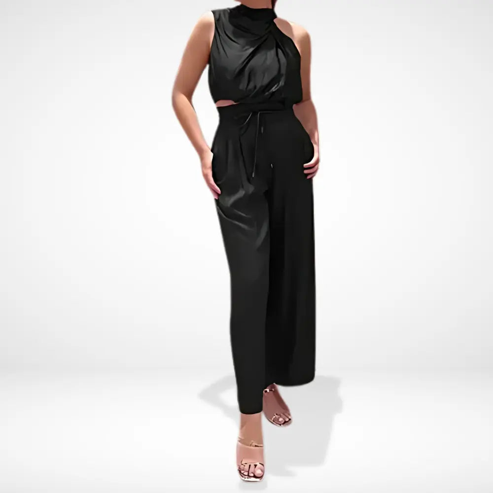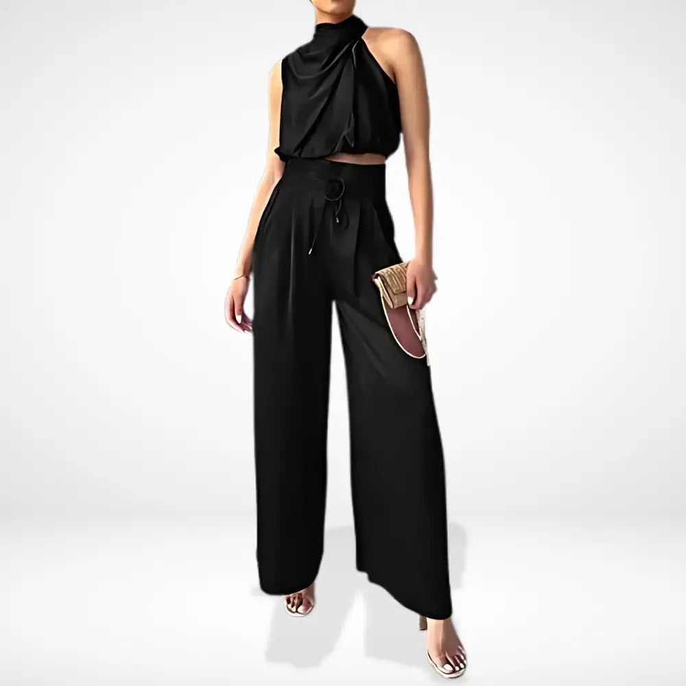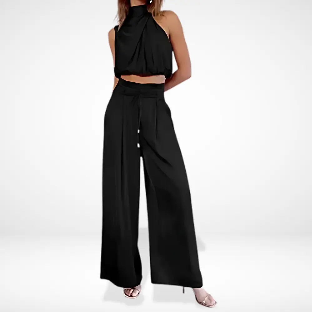 Ce haut court sans manches Rosayne se distingue par son col montant et son drapé fluide à l’avant. Il souligne la silhouette tout en apportant une touche sophistiquée, idéale pour des tenues estivales ou des soirées chics. Il se marie facilement avec des pièces à taille haute.