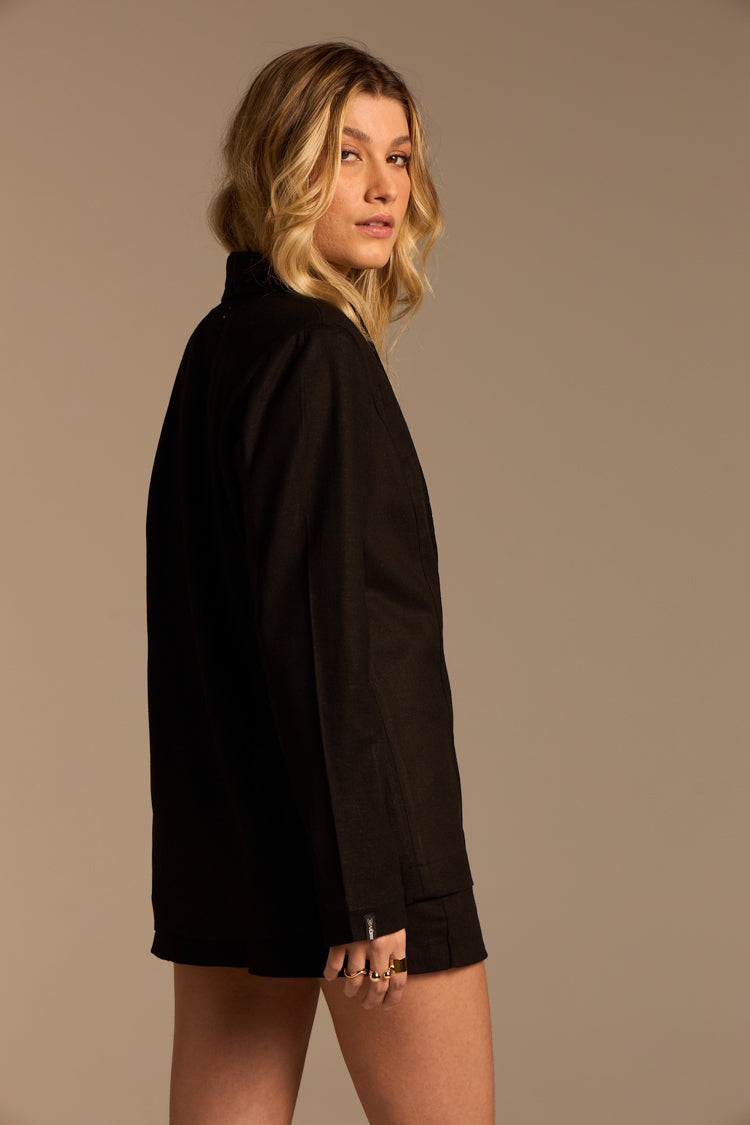 Inger incarne l’élégance intemporelle avec une touche de modernité. Confectionné en viscose et lin, ce blazer léger est parfait pour les journées estivales, ajoutant sophistication et style à chaque tenue.