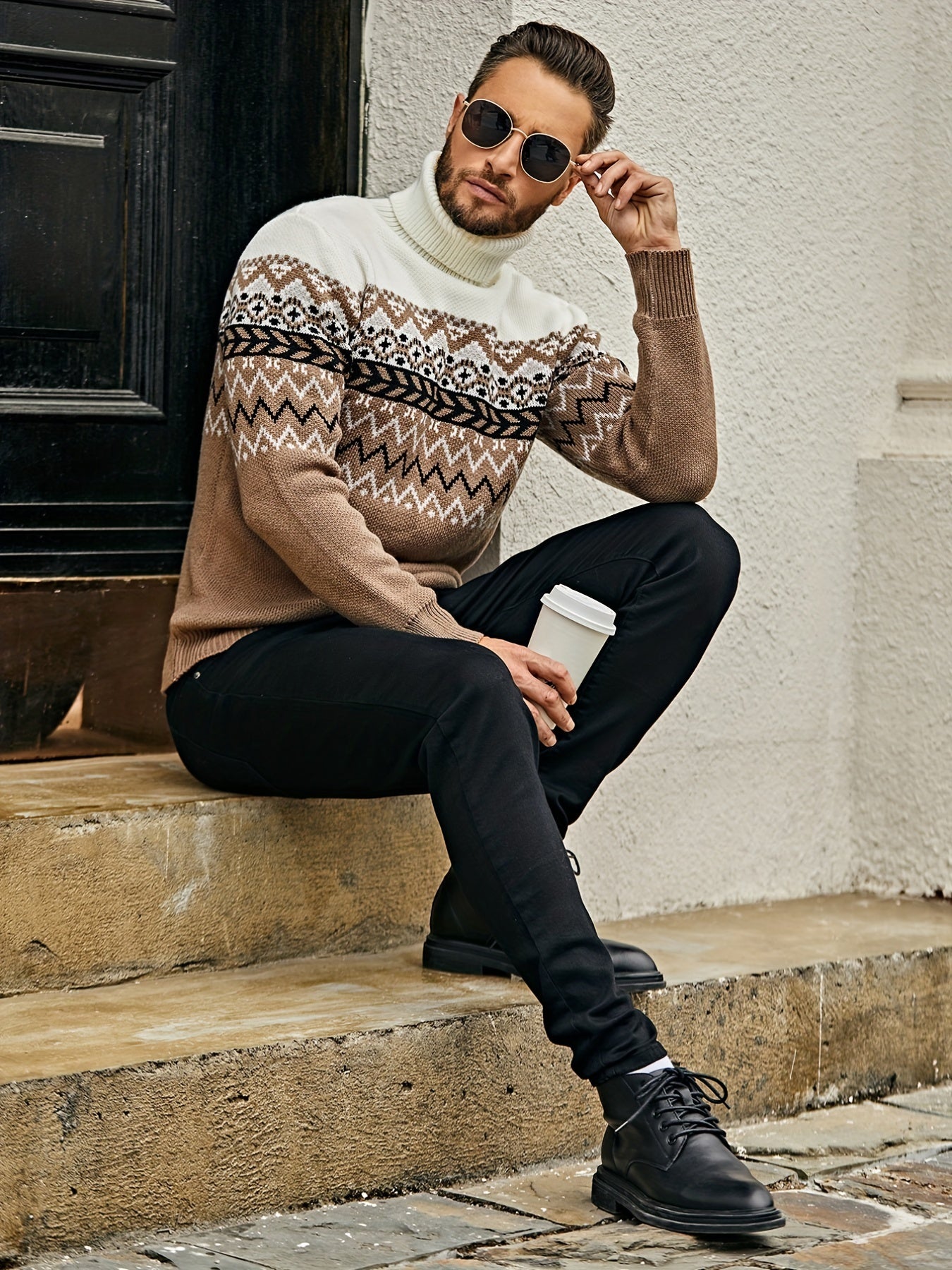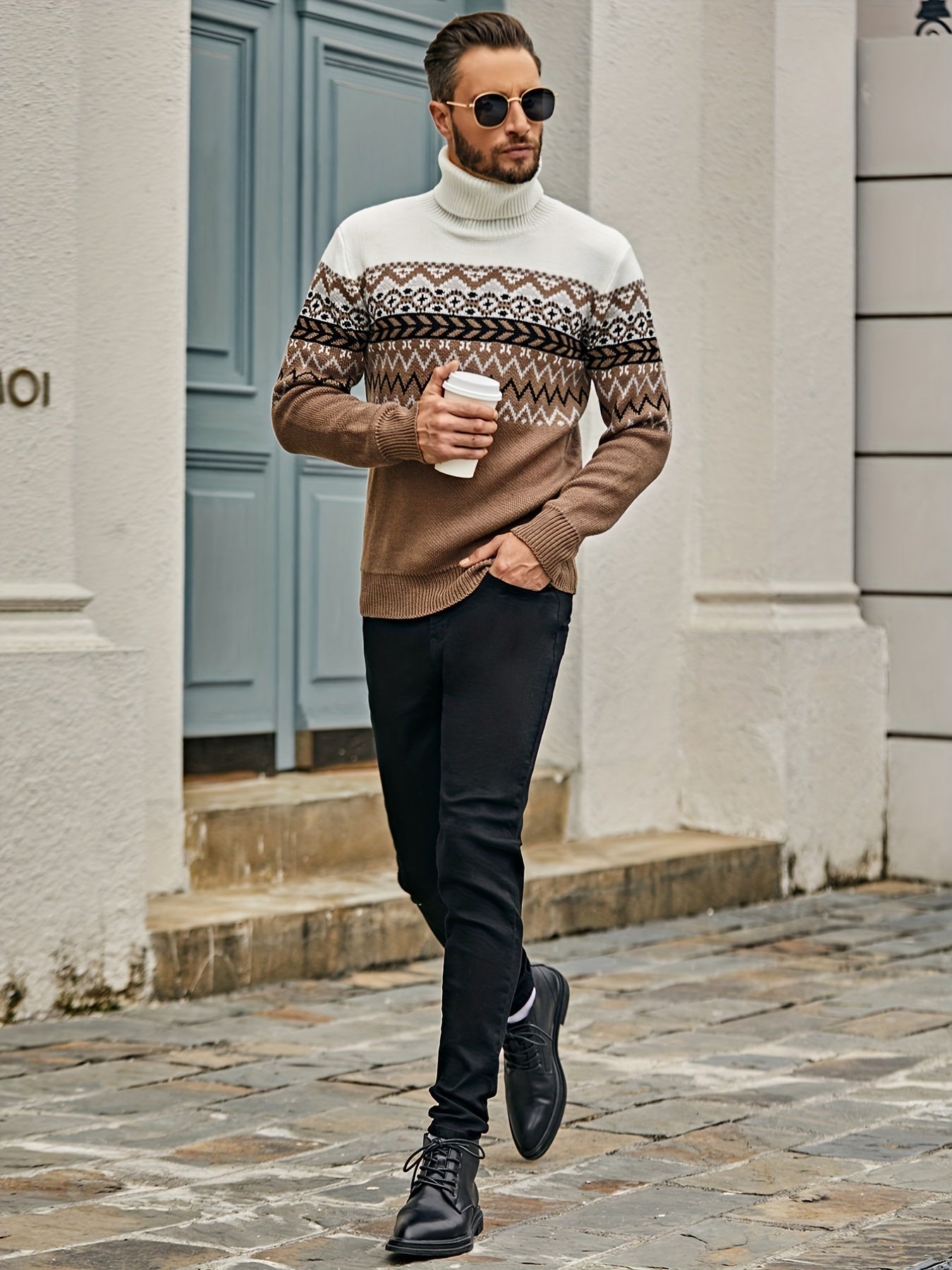Pull décontracté à col roulé pour hommes dans une coupe ajustée