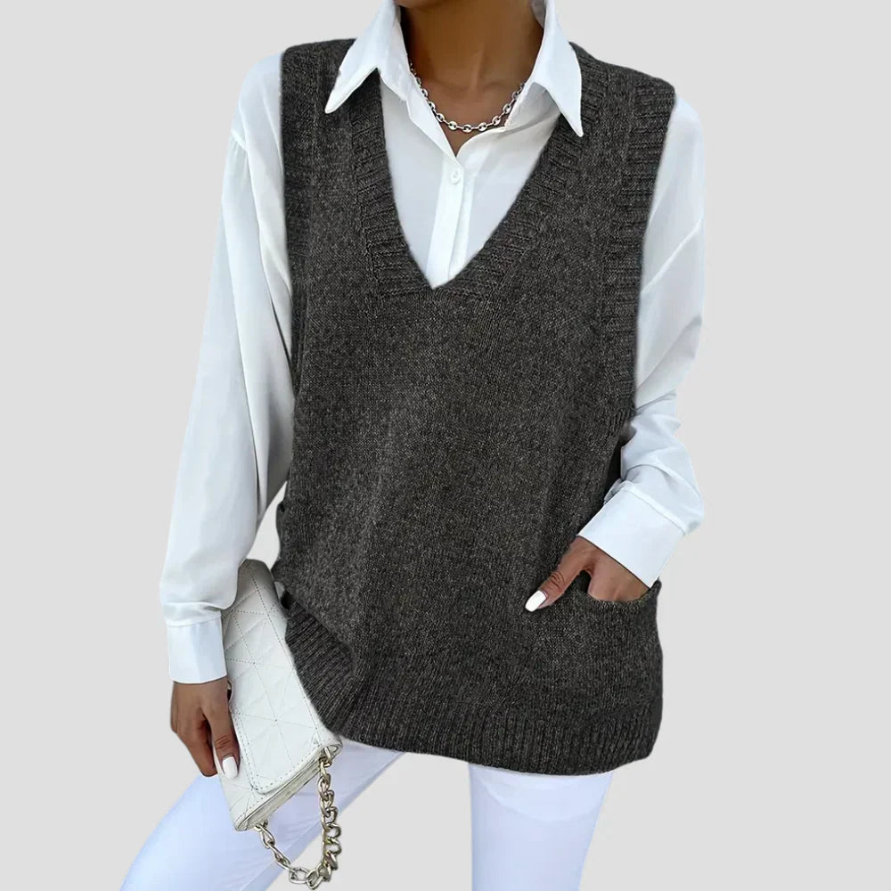 Pull sans manche décontracté pour femme | col en V
