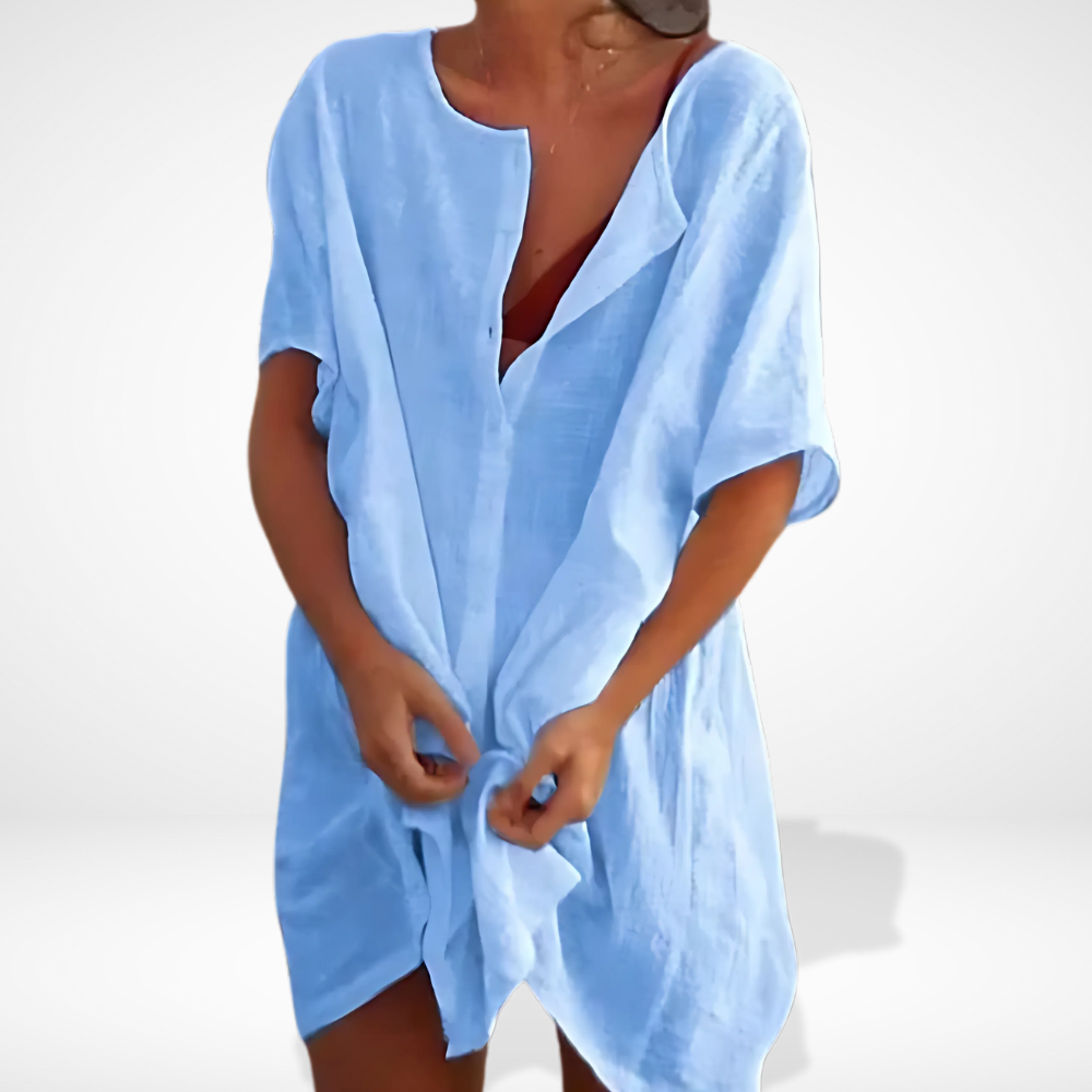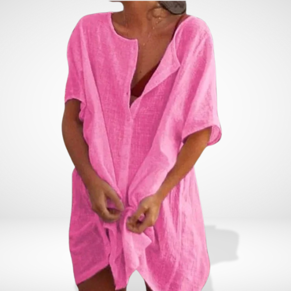 La robe Sheinel est une tenue estivale idéale pour les moments décontractés, que ce soit à la plage, en vacances ou lors de journées chaudes en ville. Sa coupe courte et fluide assure une aisance naturelle tout en offrant une allure soignée et simple.