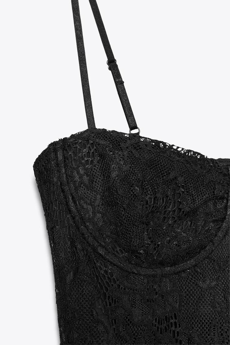 Raffinée et audacieuse, cette robe midi semi-transparente en dentelle allie sensualité et structure. Dotée d’un col droit et de fines bretelles ajustables, elle épouse élégamment la silhouette. Le corps intérieur façon body intègre des armatures pour un maintien subtil, tandis qu’une fente latérale à l’ourlet ajoute une touche séduisante à l’ensemble.