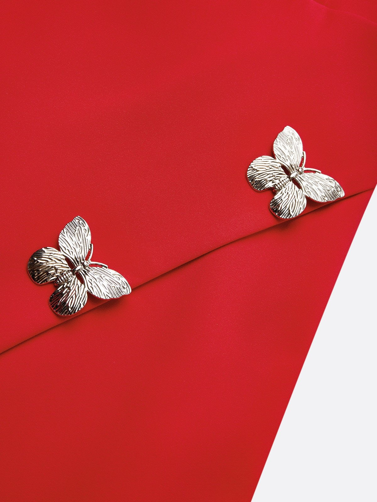 Cette robe courte trapèze allie charme classique et détail raffiné. Confectionnée dans une coupe sans manches avec un col ras du cou, elle met subtilement en valeur la silhouette tout en restant confortable. La boucle papillon rouge ajoute une touche de féminité audacieuse, idéale pour les occasions spéciales ou les sorties estivales.