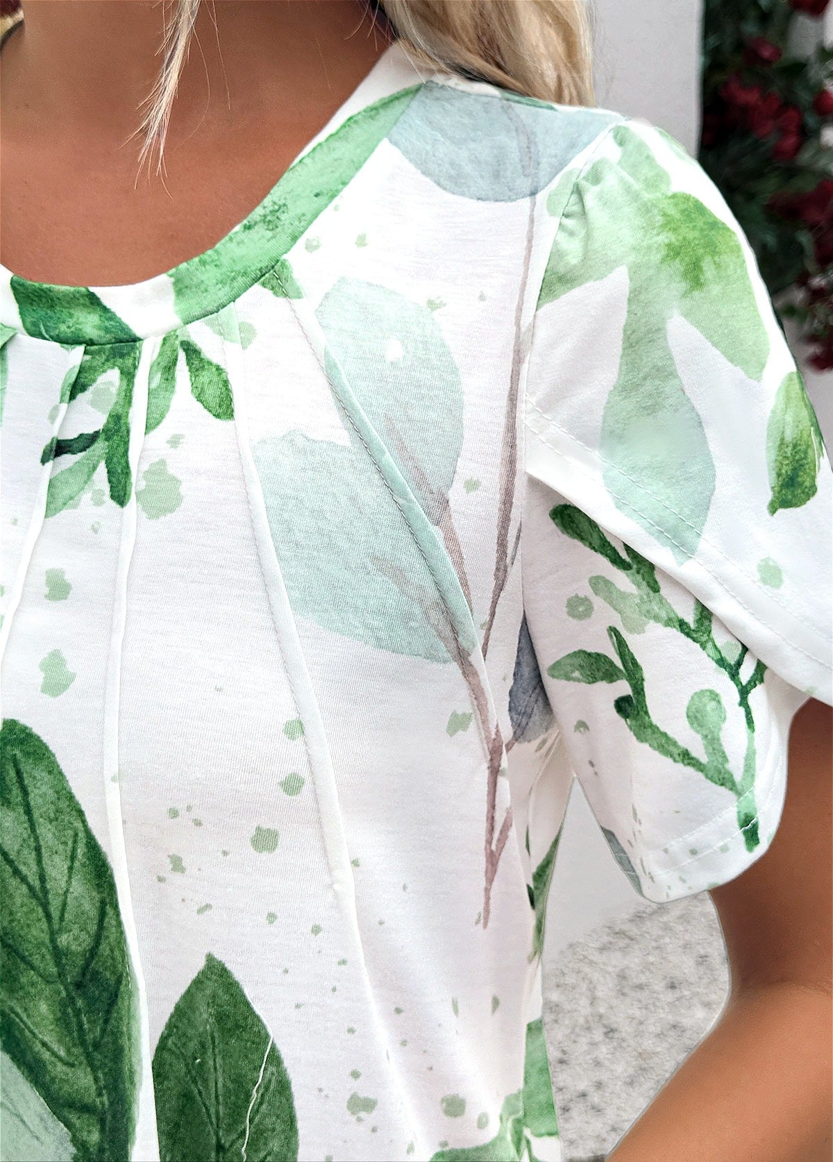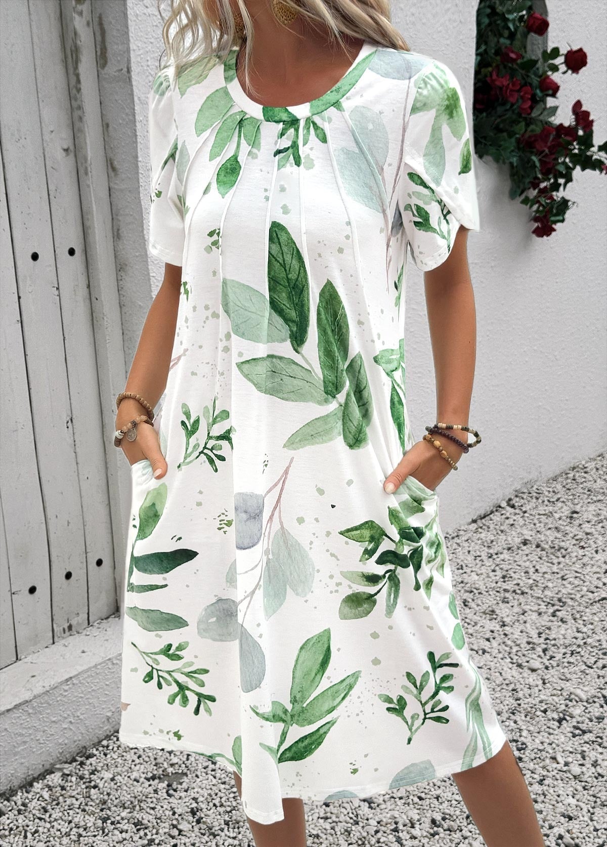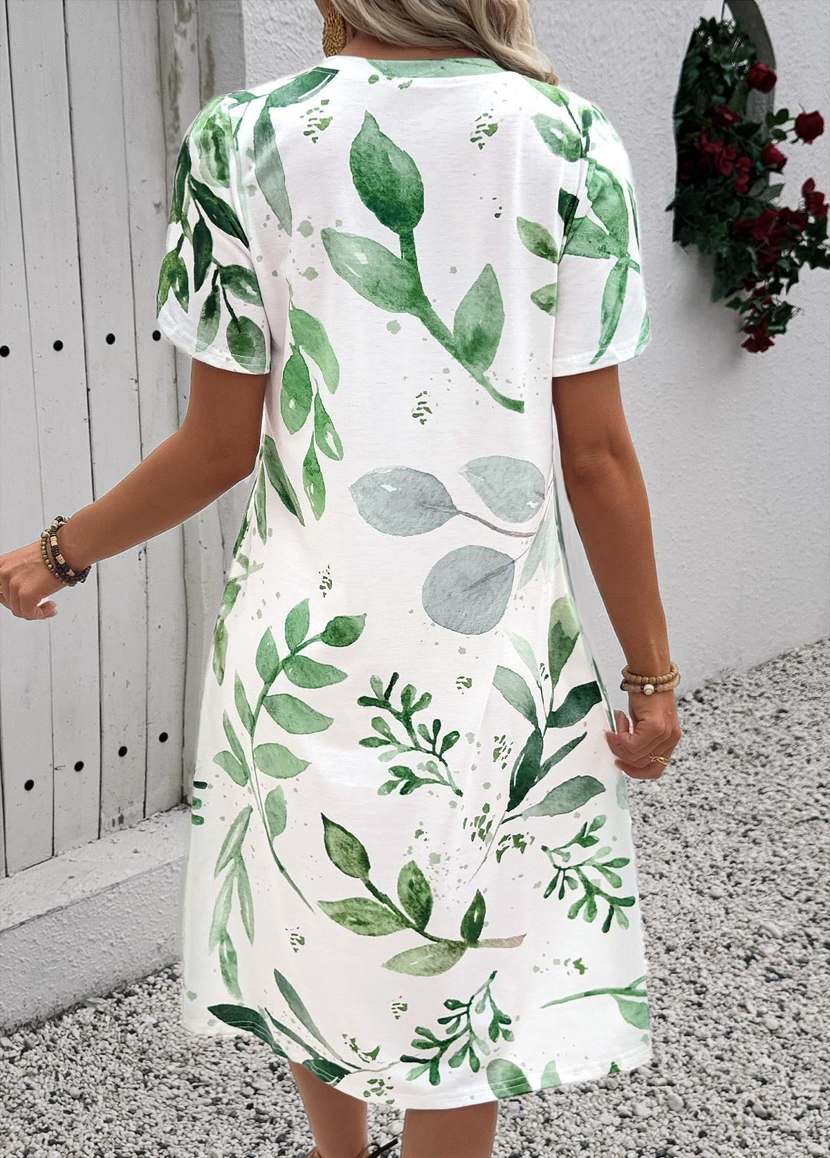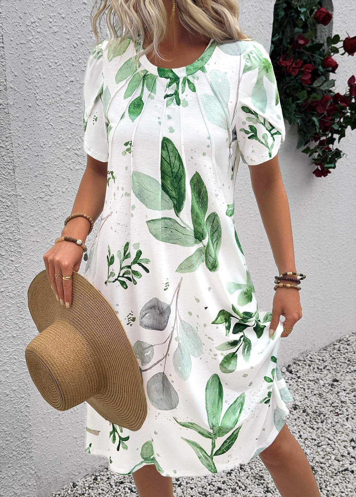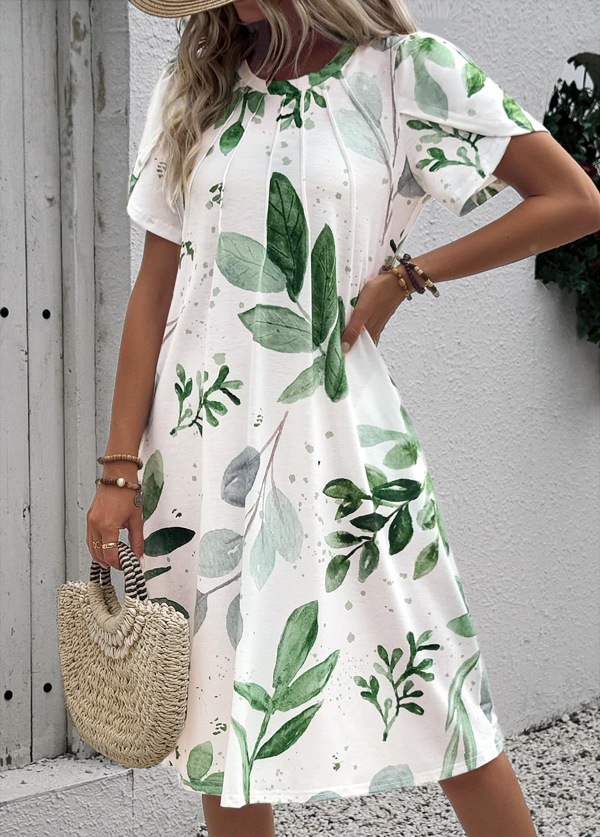 Robe trapèze à imprimé feuilles blanches
