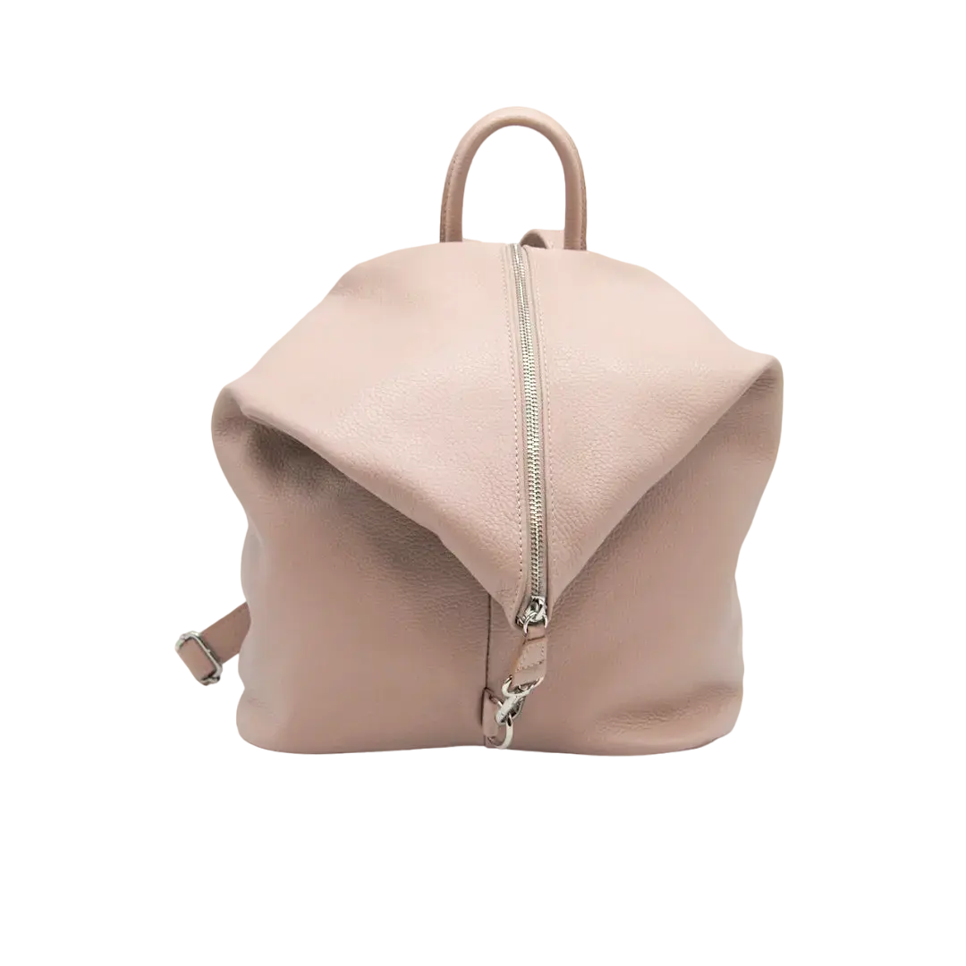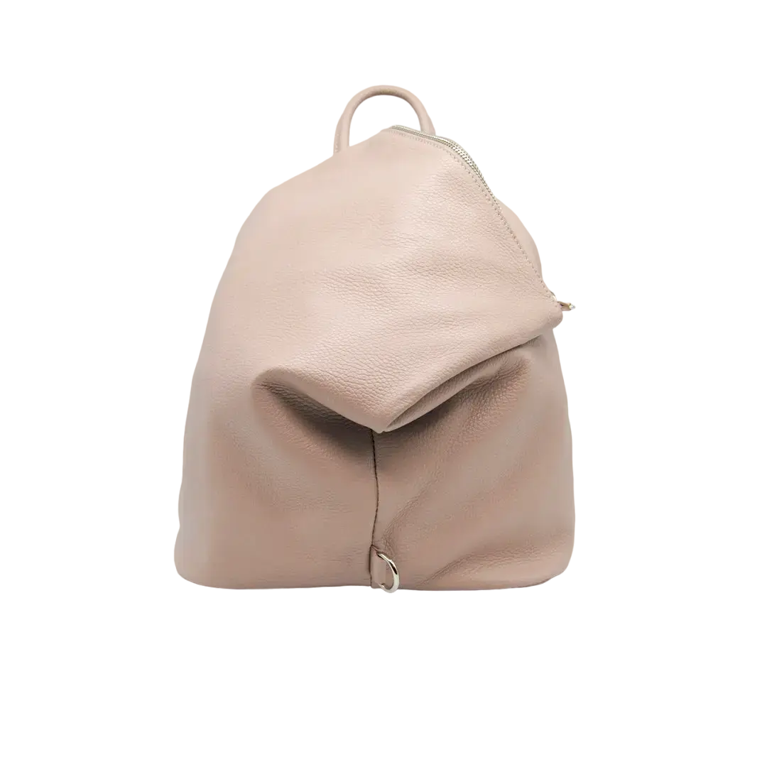 Sac à dos en véritable cuir avec double fermeture, poche avec fermeture éclair à l’arrière.