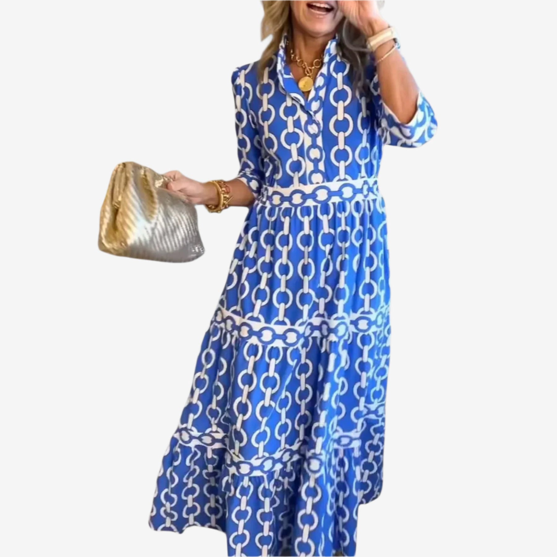 Adoptez un style affirmé avec Solara™, la robe midi accrocheuse qui attire tous les regards grâce à son imprimé géométrique audacieux et à son élégance bohème naturelle. Sa coupe décontractée, sa fermeture boutonnée sur le devant et sa jupe à volants créent une silhouette flatteuse qui s'adapte à chaque pas, parfaite pour les brunchs, les événements estivaux ou tout simplement pour se sentir fabuleuse par une journée ensoleillée. Confectionnée dans un tissu léger et respirant, Solara™ allie couleur et confort en toute simplicité, offrant un style affirmé aux femmes qui aiment les robes polyvalentes.