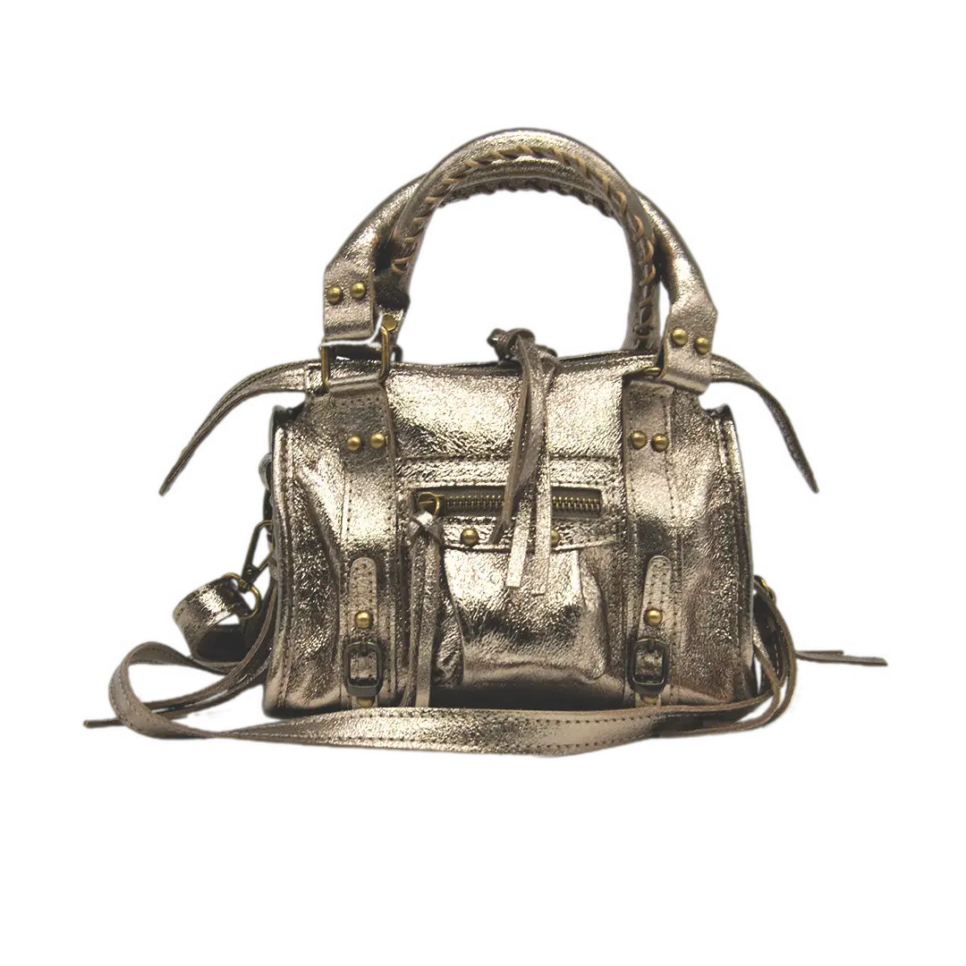 Sac en cuir, fermeture zippée avec double curseur, poche extérieure.