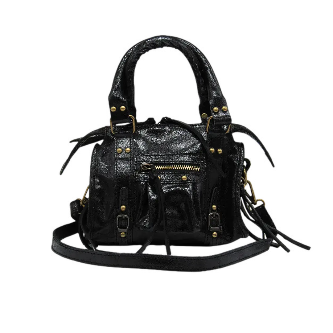 Sac en cuir, fermeture zippée avec double curseur, poche extérieure.