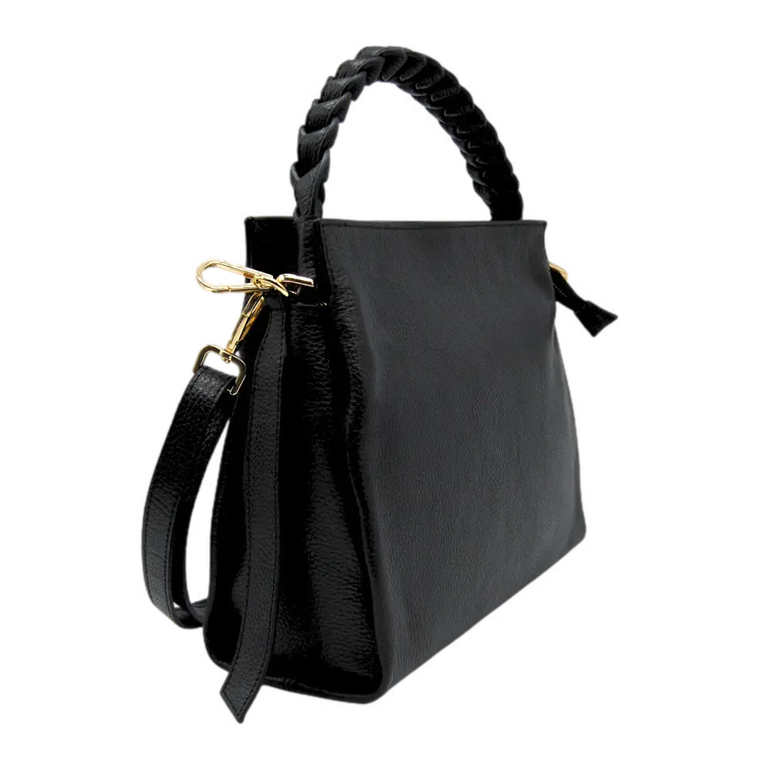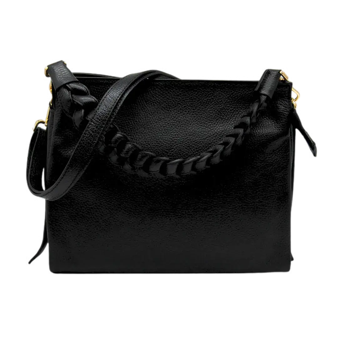 Sac en cuir, fermeture avec fermeture éclair, large poignée et bandoulière réglable.