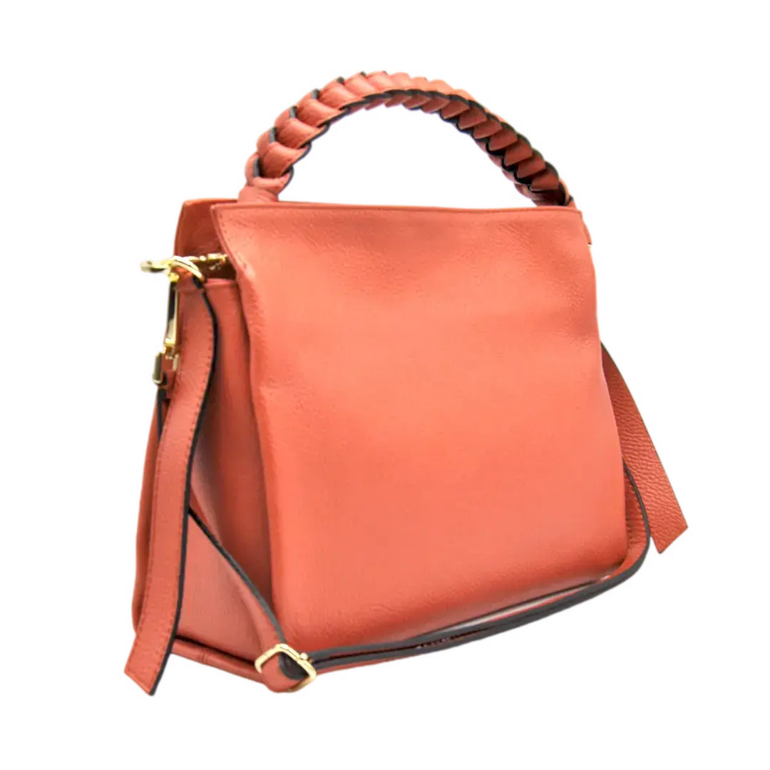 Sac en cuir, fermeture avec fermeture éclair, large poignée et bandoulière réglable.