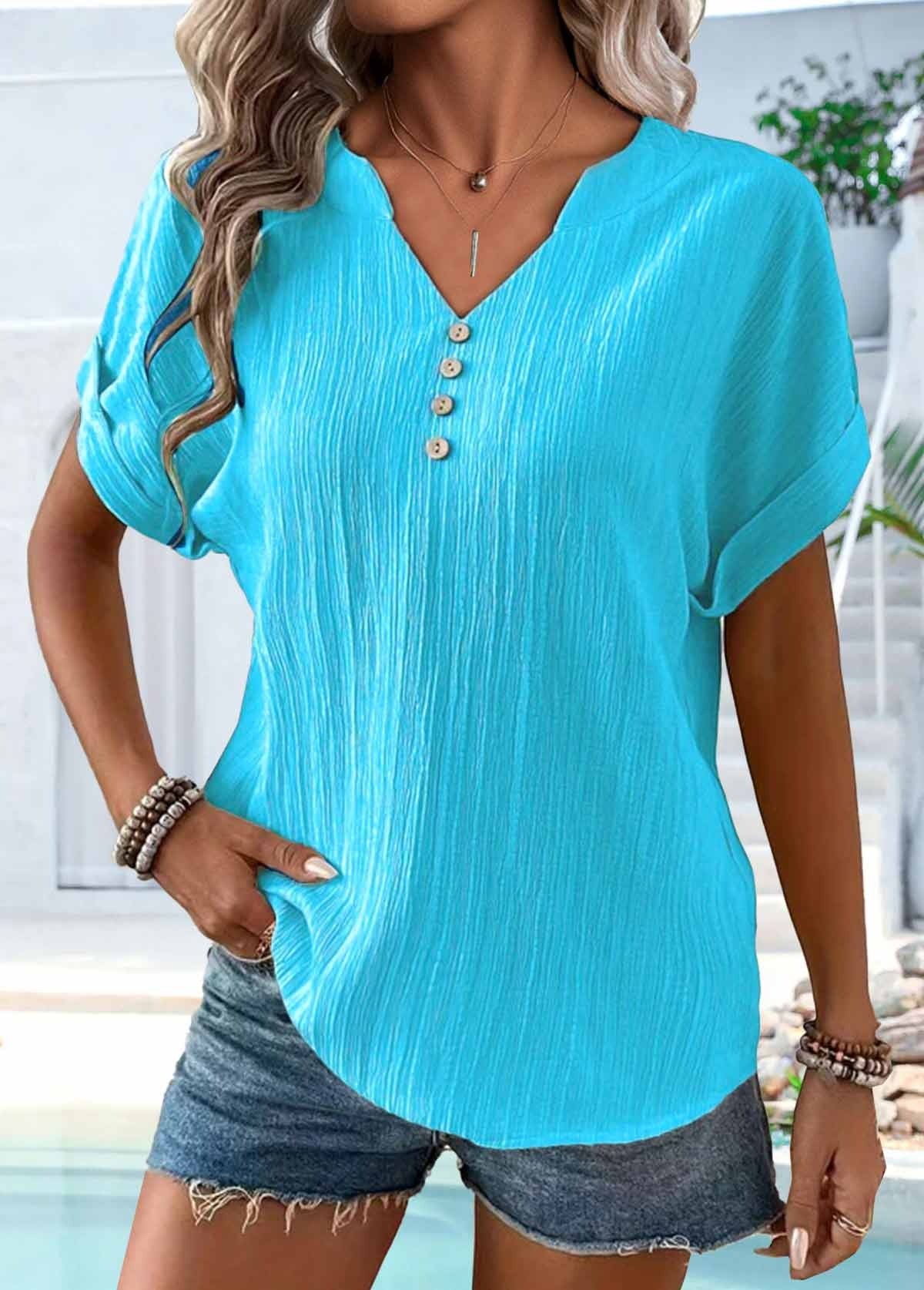 Ce t-shirt à manches courtes avec col fendu allie douceur et élégance discrète. Idéal pour les journées décontractées, il apporte juste ce qu'il faut de raffinement, tout en restant confortable et facile à porter.