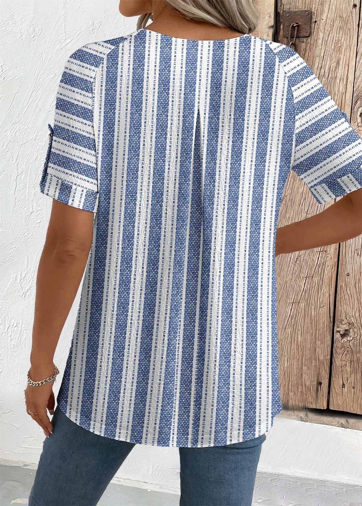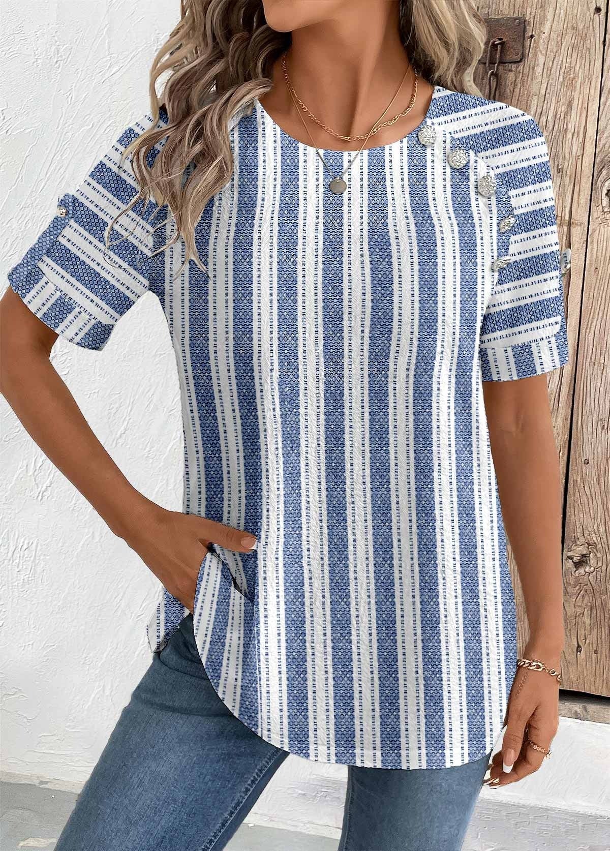 Ce t-shirt bleu à manches courtes et col rond est un basique essentiel, à la fois confortable et polyvalent. Avec sa teinte apaisante et sa coupe classique, il devient une pièce incontournable de votre garde-robe, à porter en toute occasion.