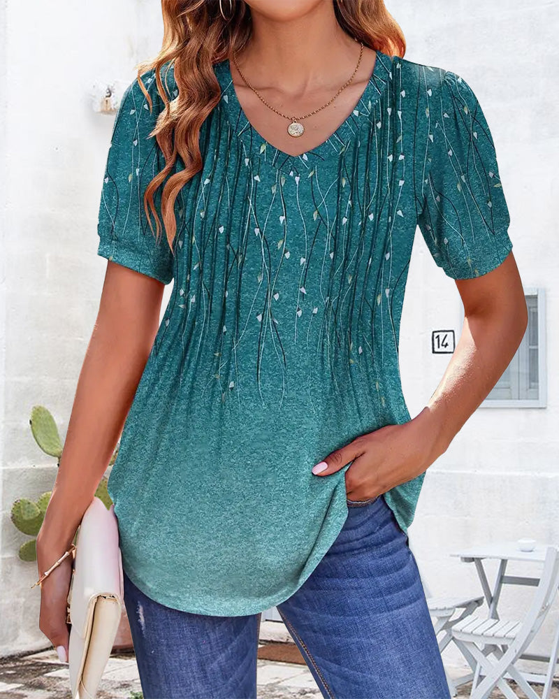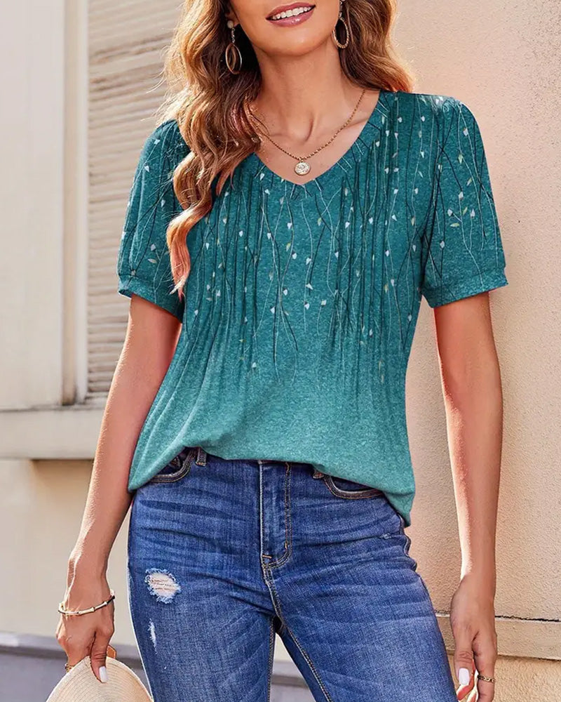 T-Shirt Col En V Décontracté Imprimé À Manches Courtes