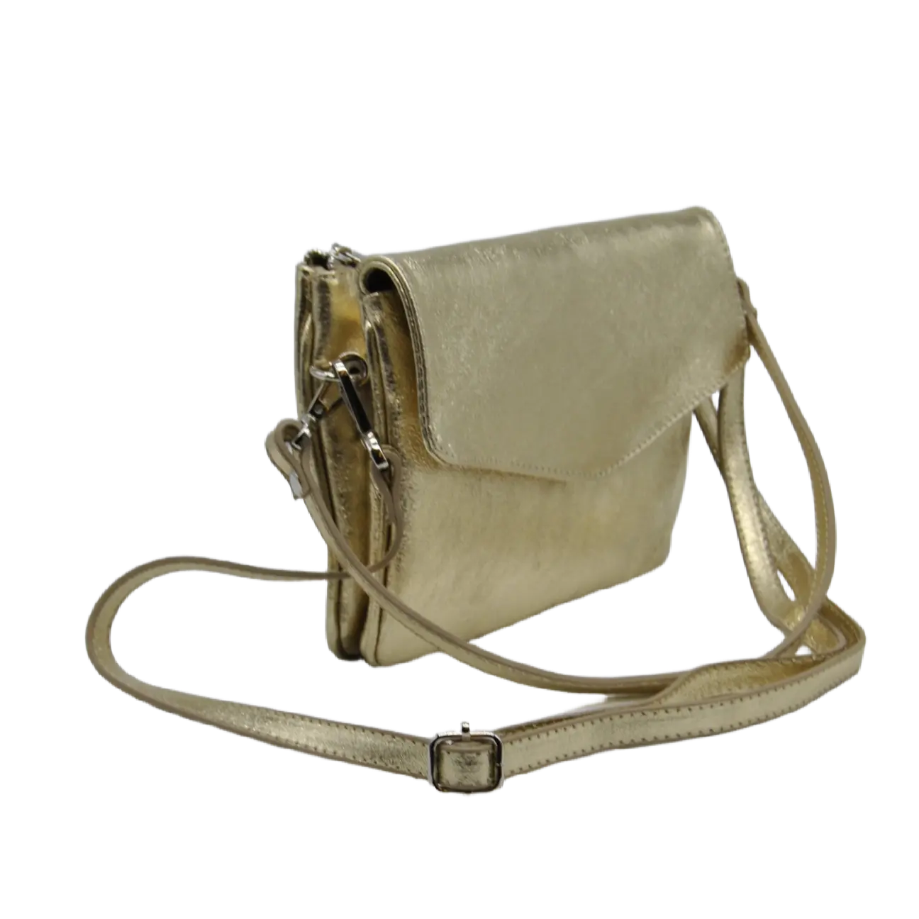 Sac en cuir multi-poches, large poignée et bandoulière réglable.